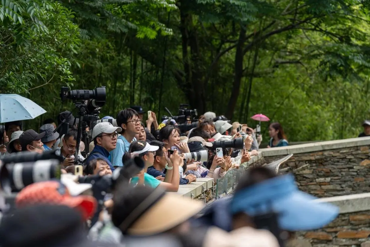 7月17日,卧龙神树坪基地举办大熊猫集体生日会。大批游客前往卧龙神树坪基地拍照记录大熊猫集体生日
