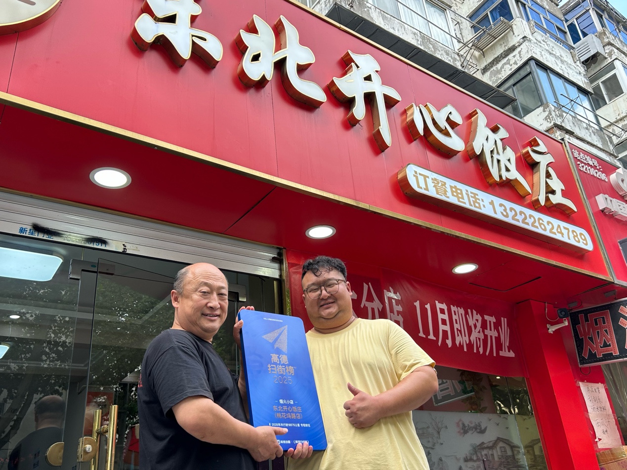 江苏镇江东北开心饭庄老板喜迎“高德扫街榜”