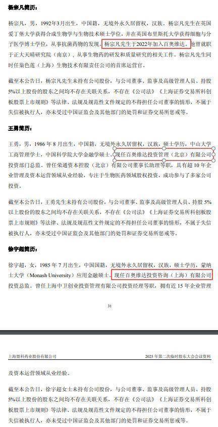 此前,投下反对票的董事赵雅超,目前在百奥维达任职,为董事总经理。