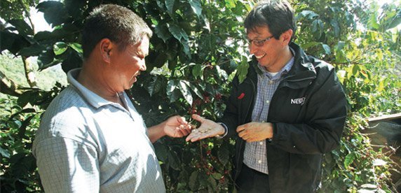 雀巢咖啡农艺部经理孔赞龙在指导普洱咖农富隆咨询