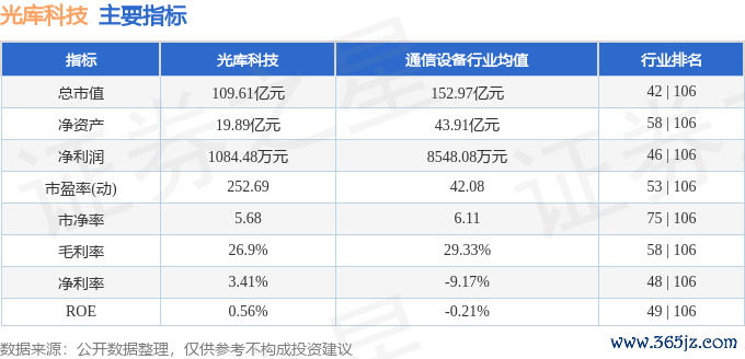 该股主要指标及行业内排名如下: