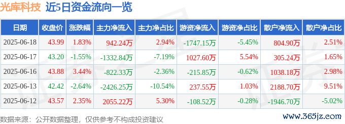 6月18日的资金流向数据方面,主力资金净流入942.24万元,占总成交额2.94%,游资资金净流出1747.15万元,占总成交额5.45%,散户资金净流入804.9万元,占总成交额2.51%。