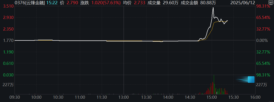 云锋金融盘中一度飙升98%云锋金融盘中一度飙升98%