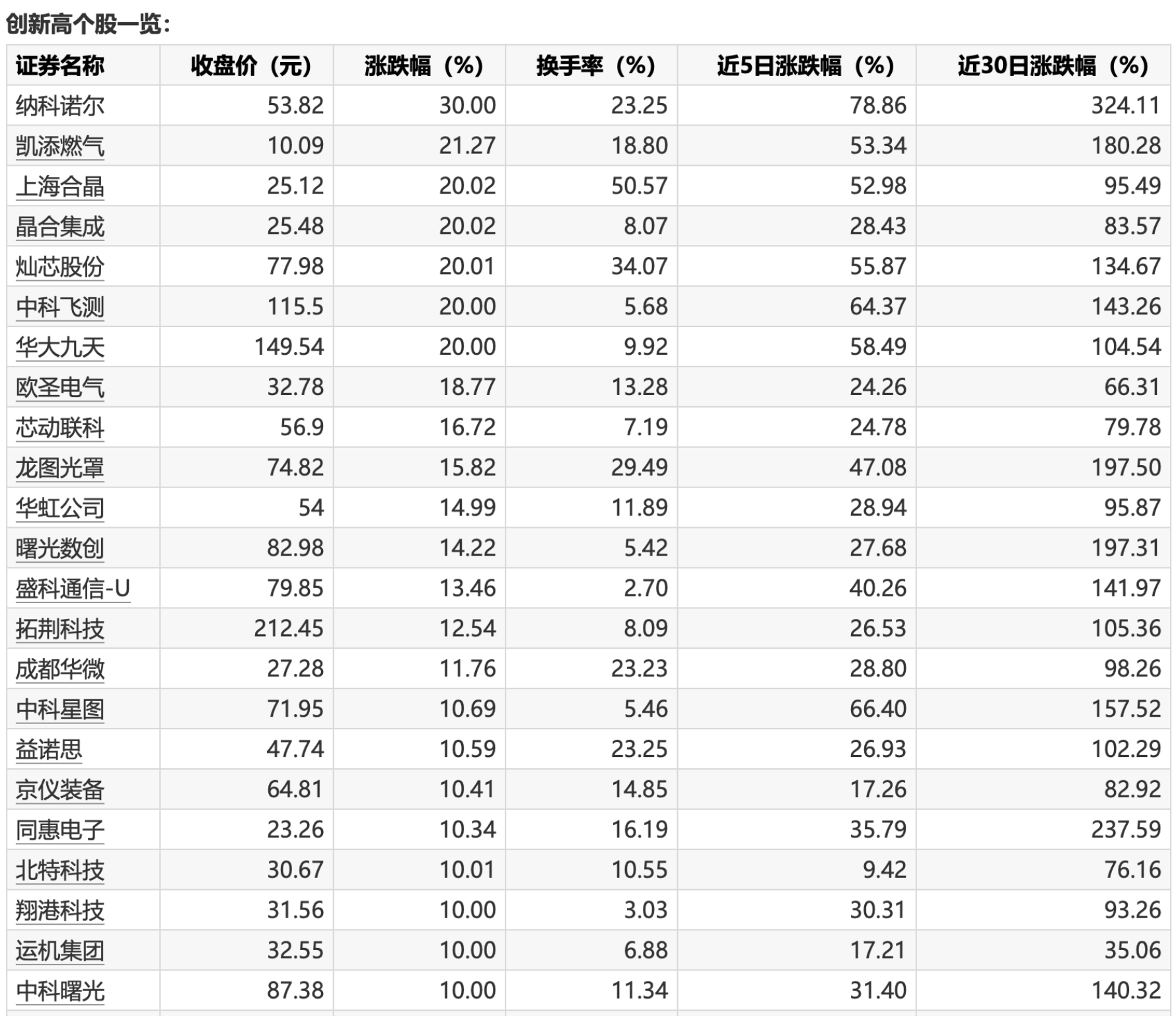 39只个股今日收盘创历史新高39只个股今日收盘创历史新高
