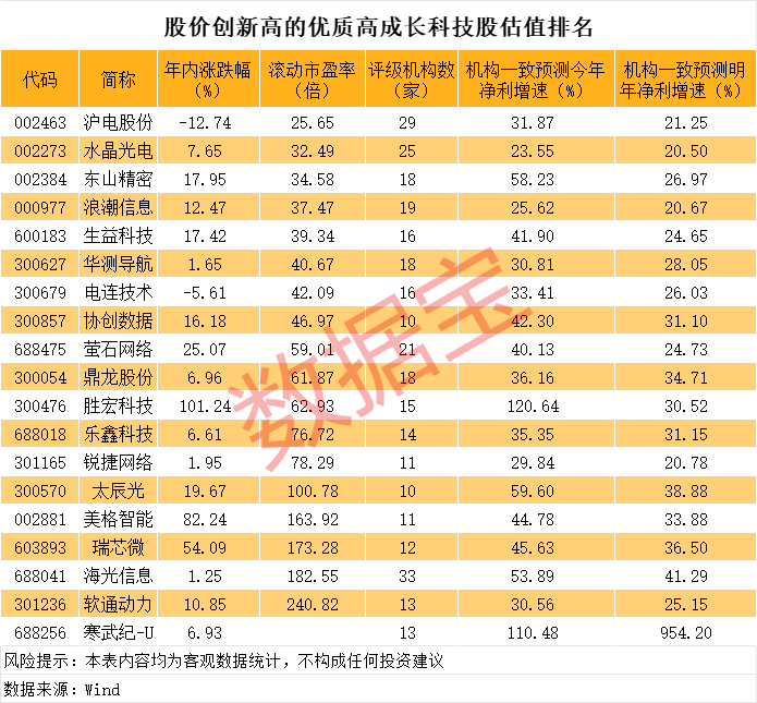 创历史新高的优质高成长科技股曝光,19股上榜创历史新高的优质高成长科技股曝光,19股上榜